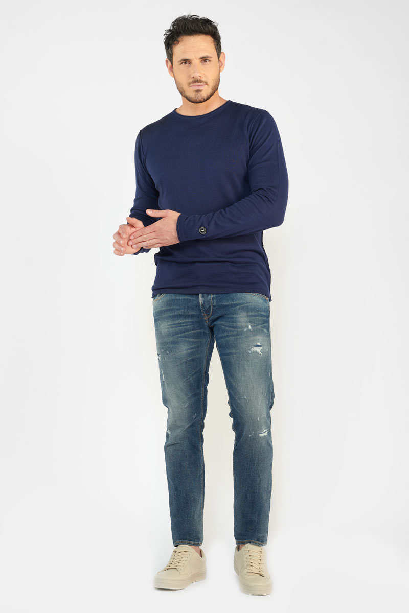 Le jean adjusted a une coupe droite décollée au niveau des cuisses et resserrée en bas de jambe. C’est l’équivalent d’un jean semi-slim : une coupe ni trop près du corps, ni trop large ! Parfait pour convenir à tous les hommes, quel que soit leur style. Il est bien évidemment très confortable et offre une grande liberté de mouvement grâce à son tissu stretch.