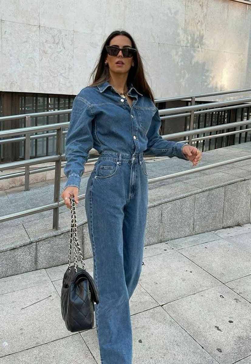 Le total look denim est une grande tendance, ce qui explique l’incroyable succès de la combinaison denim chaque année.