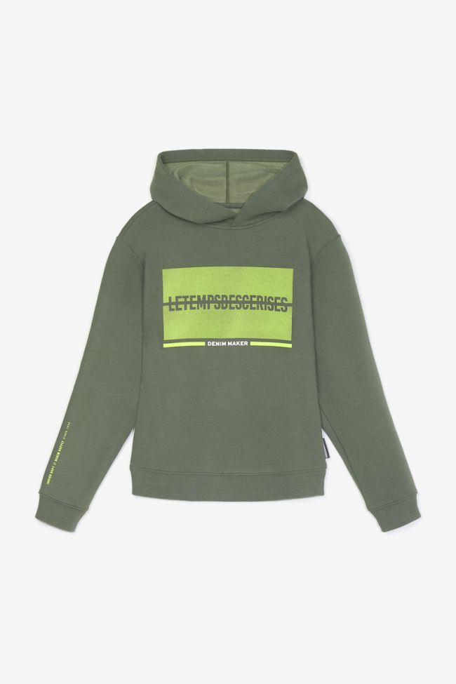 Sweat à capuche Murabo dans les tons de kaki-vert à la matière agréable et douce à l'intérieur et au look urbain sportswear avec son décor en relief jaune fluo personnalisé LTC. Pour le détail, un imprimé en relief jaune fluo sur la manche droite.