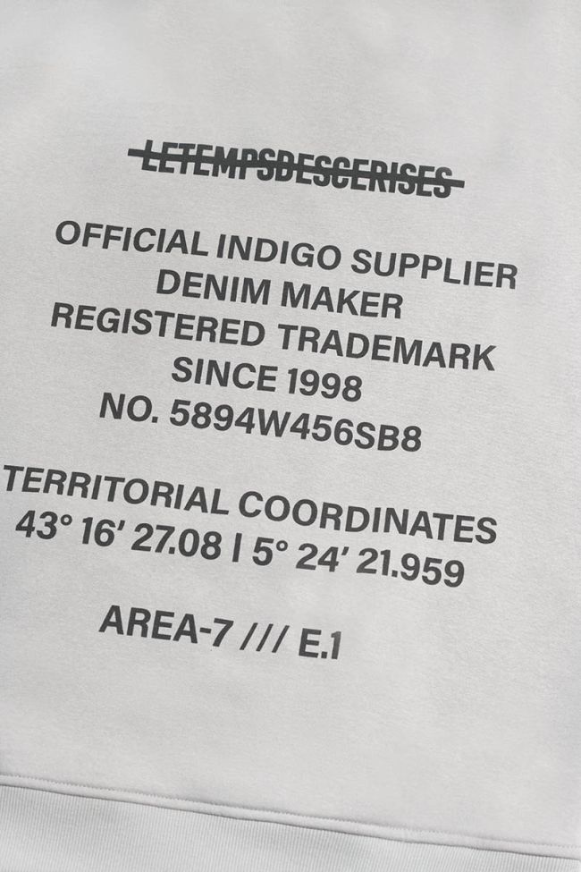 Sweat à capuche Tanbo très tendance avec sa couleur gris clair et aux détails tendance comme son marquage noir au dos ainsi que sa poche kangourou centrale habillée d'une inscription personnalisée "Le Temps des Cerises".