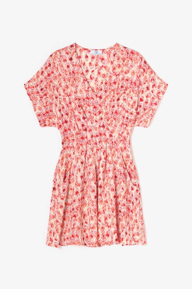 Robe courte fluide à effet satiné et imprimé fleuri.