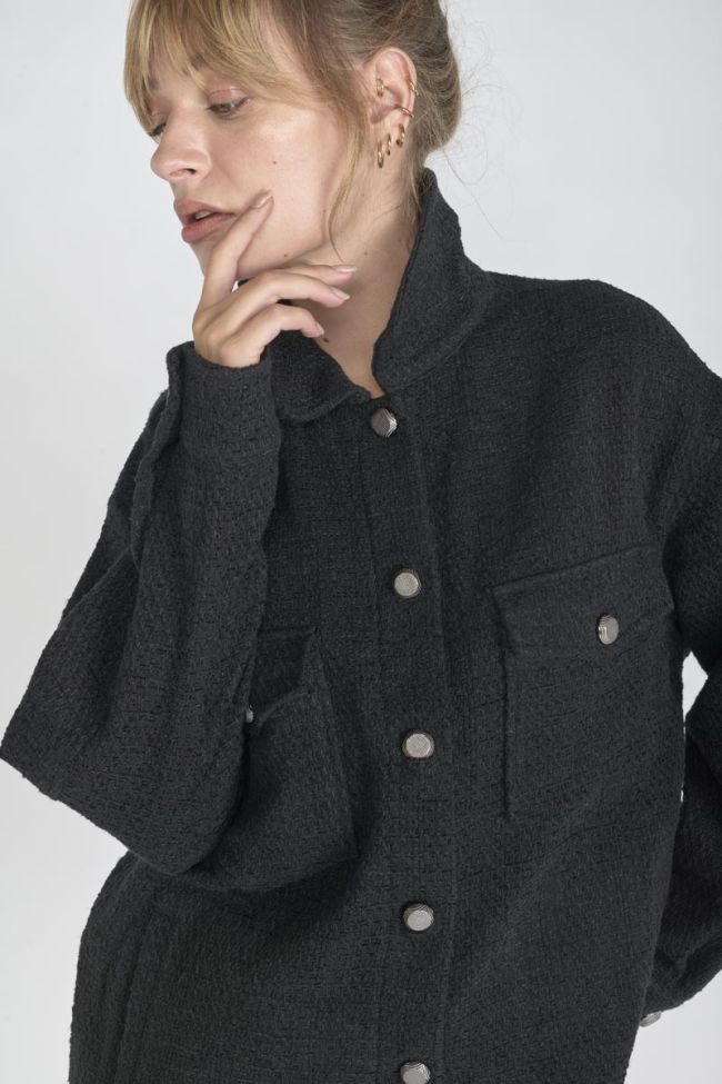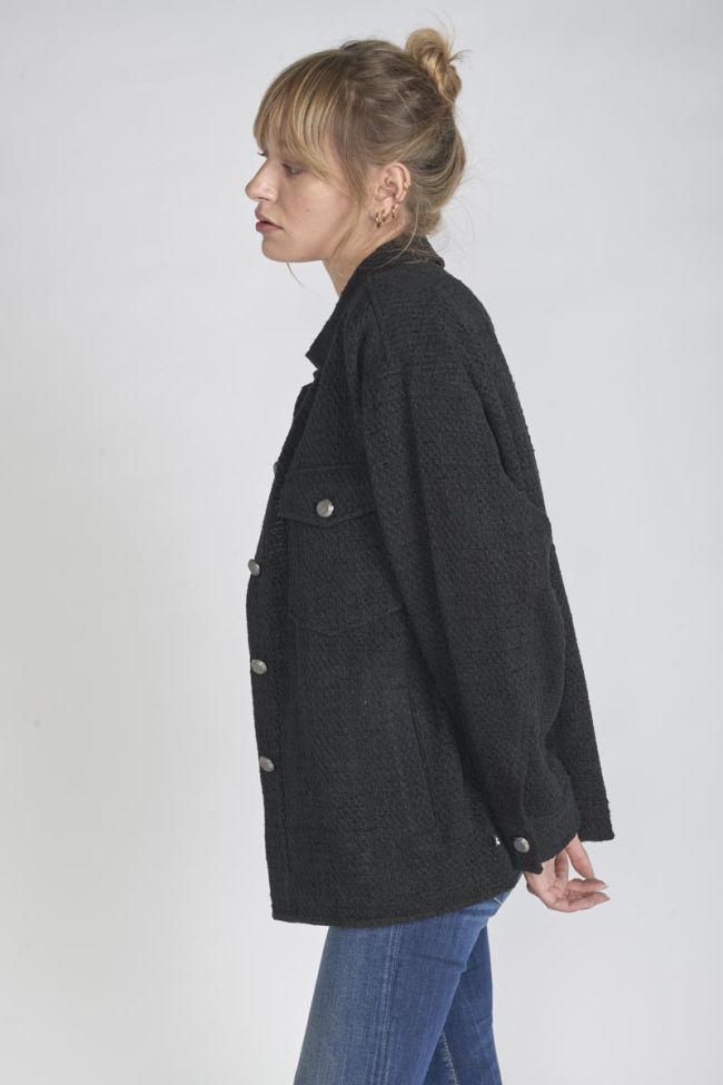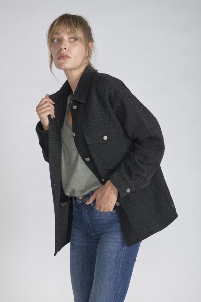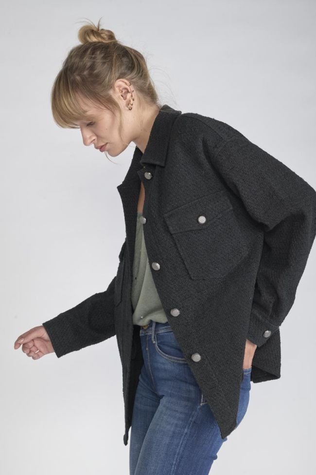 Cette surchemise Anatoli est la pièce qui rendra tendance toutes vos tenues avec son tweed noir, ses boutons fantaisie argentés et ses deux poches à rabat boutonné au niveau de la poitrine.