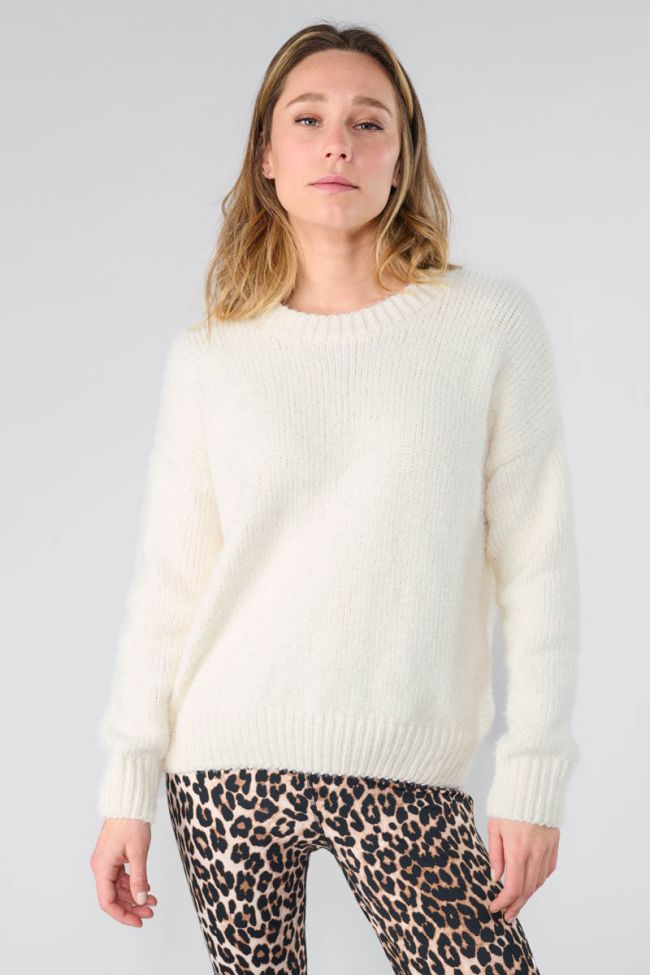 Ce pull Daisy est votre allié pour être tendance et élégante cet hiver grâce à sa couleur crème, sa coupe loose et ses boutons noirs et dorés qui parcourent toute la longueur du dos. Enfin, sa maille douce est agréable à porter.