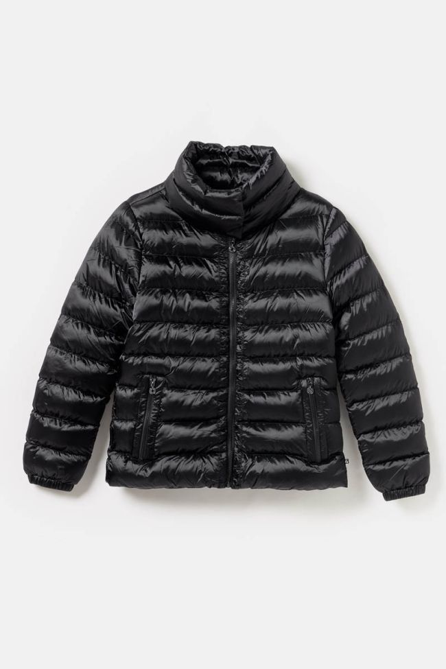 Cette doudoune noire Dolores a un style casual décontracté avec sa matière satinée, douce, gonflée et agréable, son col montant à boutons pressions en cas de grand froid, sa fermeture et ses poches zippées personnalisées LTC, et ses poignets élastiqués pour rester au chaud.