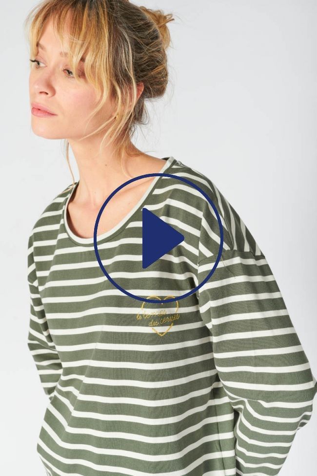 T-shirt manches longues Gatsby à rayures kaki et écru