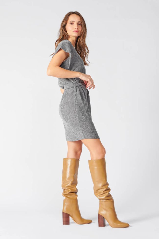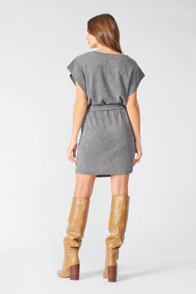 Cette robe Hazel est idéale pour un look tendance qui reste féminin avec sa couleur cendrée, son tissu plissé qui apporte un côté légèrement délavé et ses manches en forme d'épaulette. Une ceinture amovible permet de cintrer la taille.