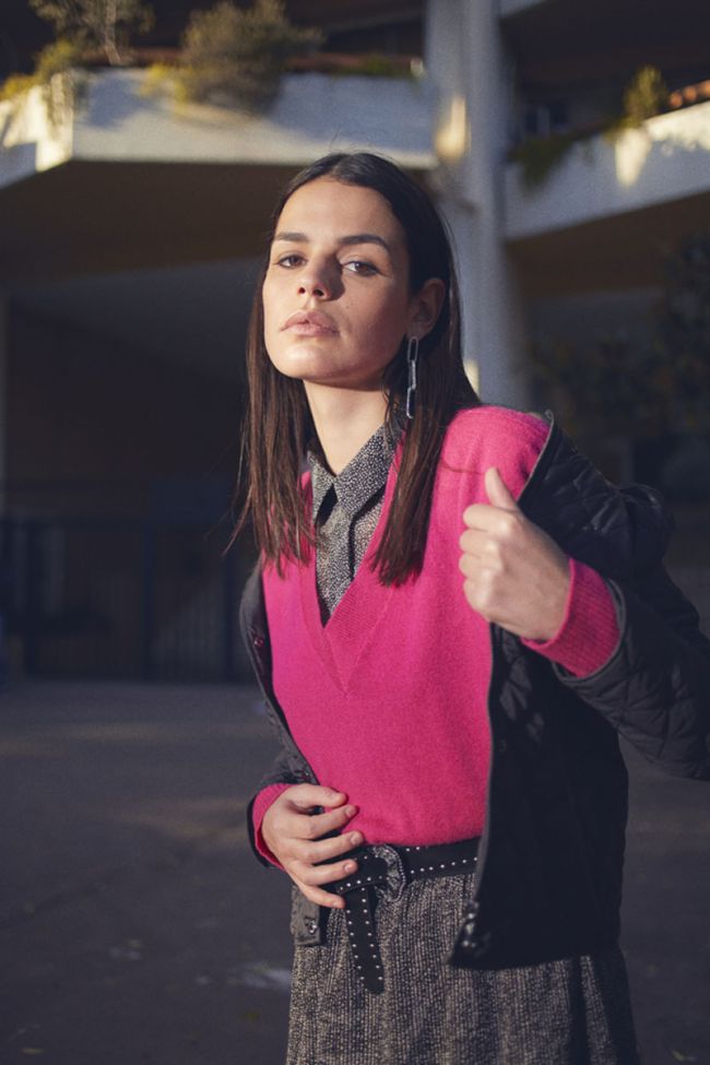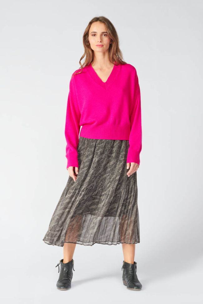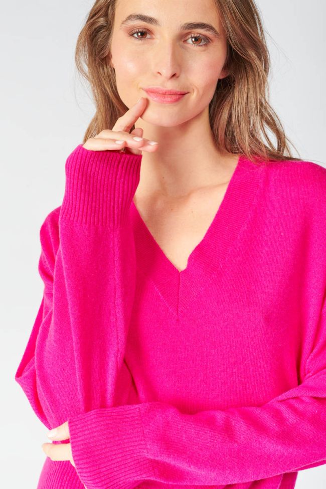 Ce pull à col V Martie couleur fushia a une matière en cachemire mélangé très douce et agréable à porter, avec sa coupe loose et ses bords côtes sur les poignets. Il donne un style casual et cocooning.