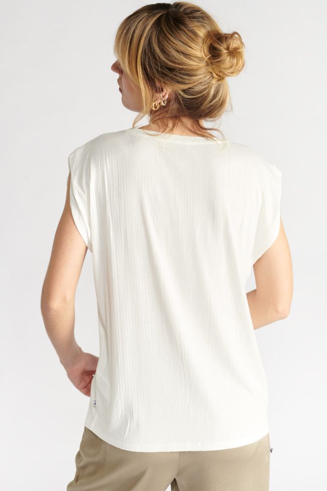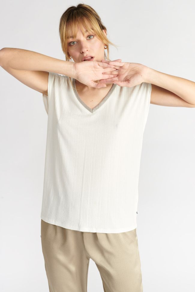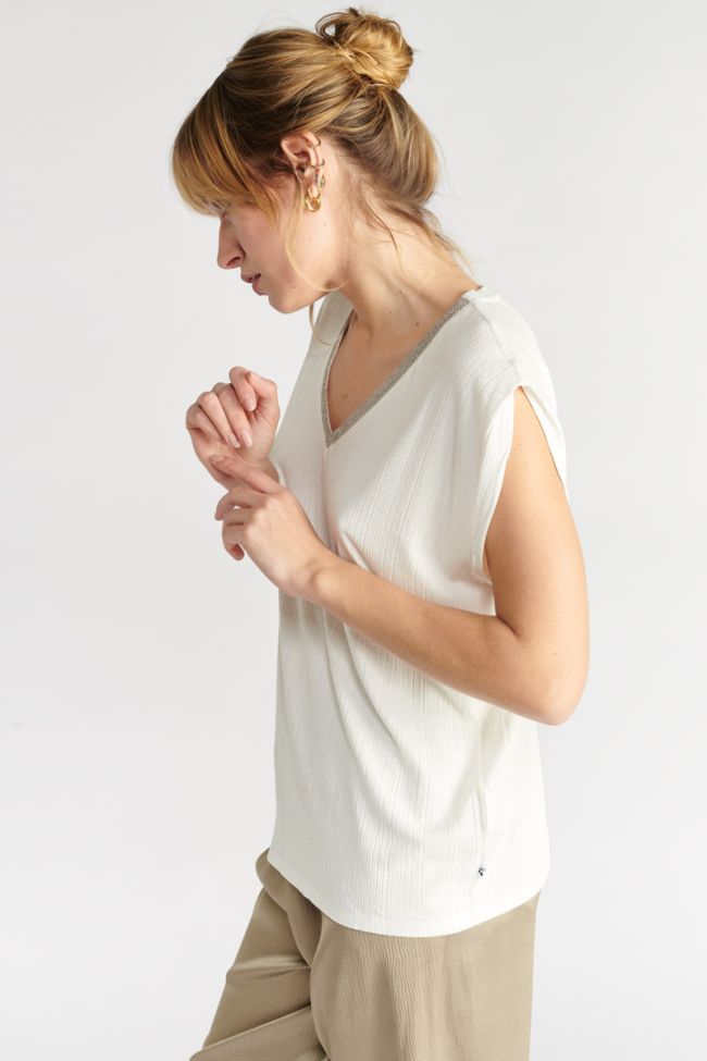 Ce top Santos crème est très agréable à porter grâce à son jersey fluide et léger. Son col bijou argenté et son tissu fantaisie apportent du chic à la pièce.