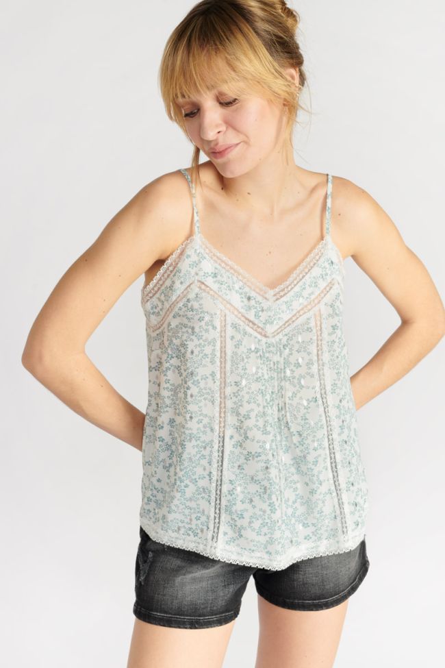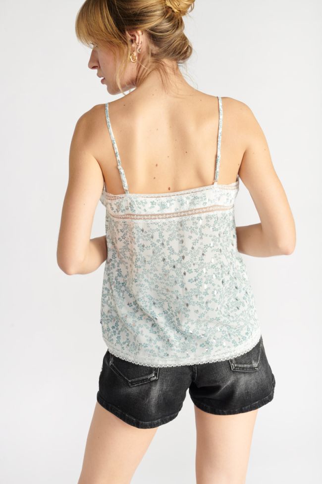 Ce caraco Sienna blanc est très féminin avec son motif fleuri bleu glacial parsemé de touches argentées ainsi que ses multiples incrustations de dentelles très élégantes. Pour plus de confort, ses fines bretelles sont réglables.