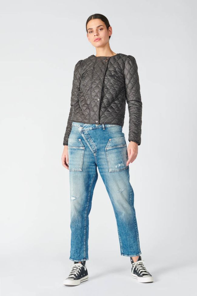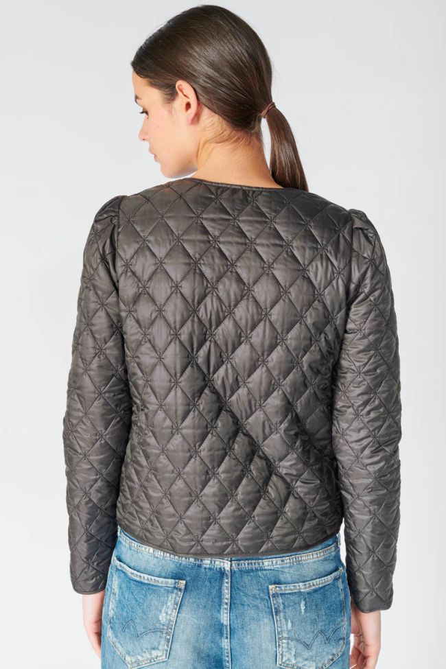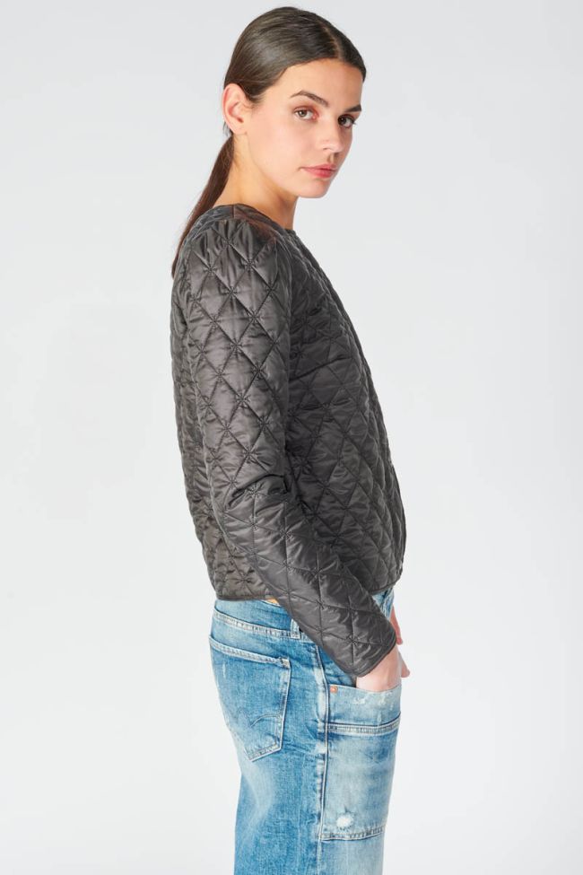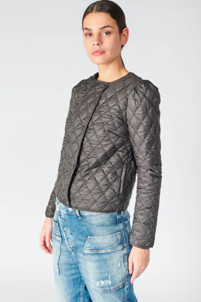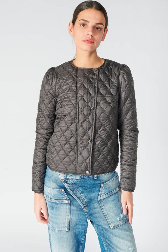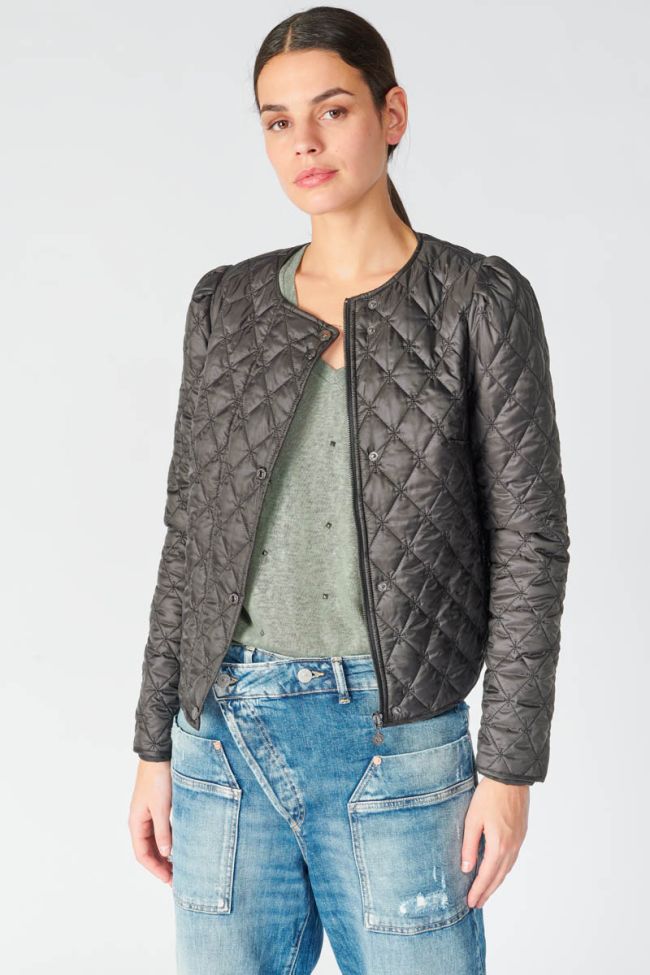 Cette doudoune fine Tribeca noire a un look décontracté avec son effet matelassé mais reste féminine grâce à ses surpiqûres fantaisie étoile, ses épaules avec des coutures donnant du volume et ses boutons pression argentés. Deux poches invisibles à l'avant complètent la pièce. Cette doudoune peut être portée seule à l'entrée de saison ou sous un manteau plus épais en période de grand froid.