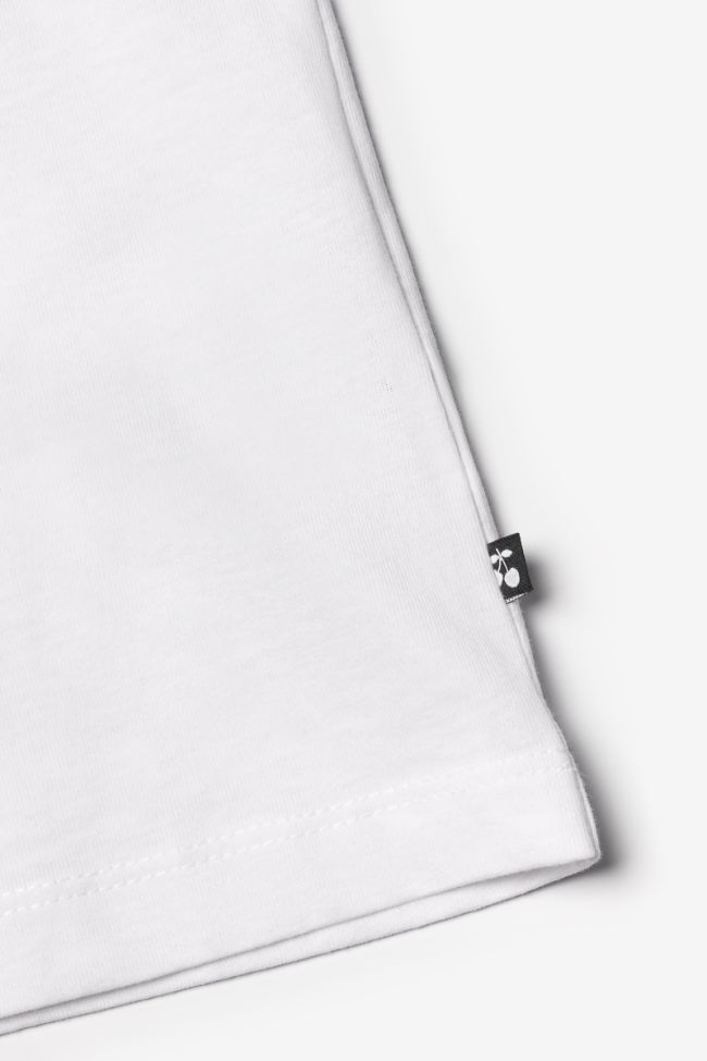 T-shirt Gracygi au style tendance très girly avec son imprimé, personnalisé "Le Temps des Cerises", à motif feuilles dans les tons de bleu avec des touches dorées.