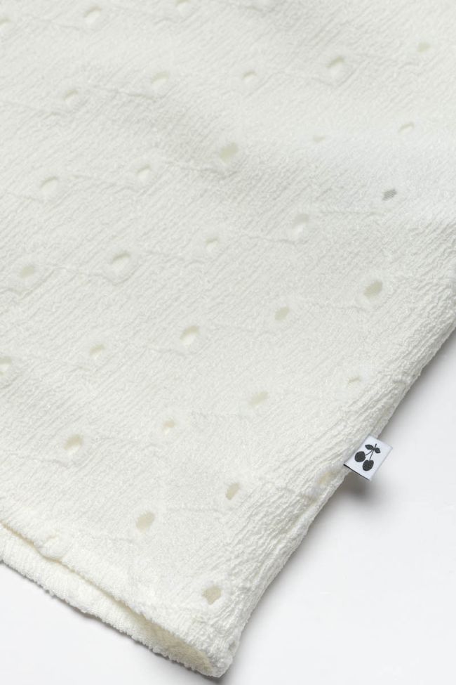 Top à fines bretelles en jersey blanc ajouré pour donner un effet dentelle. Pour plus de confort, ses fines bretelles sont réglables et une fine doublure complète la pièce.