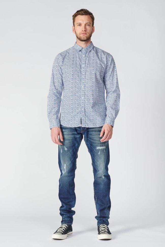 Cette chemise Brotel bleue vous donnera un look raffiné et élégant avec son motif à petites feuilles blanches, ses boutons nacrés blancs et ses revers aux poignets avec liseré personnalisé "Le Temps des Cerises" et empiècement contrastant fleuri. Pour le détail final, un mini liseré drapeau bleu, blanc, rouge dans le dos.