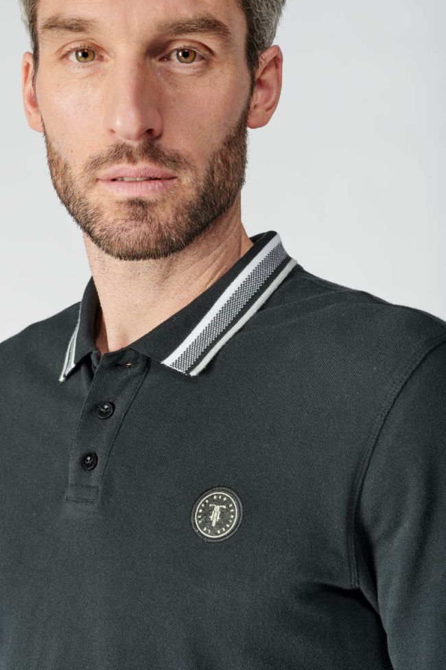 Ce polo Gilor noir est un intemporel, son col et ses bords de manches décoratifs avec liserés noirs et blancs apportent plus de style à la pièce. Pour le détail, un écusson personnalisé Le Temps des Cerises et un liseré bleu, blanc, rouge sous le col au dos.