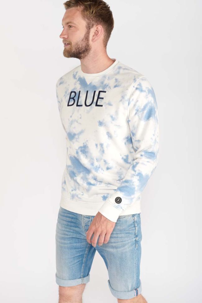 Ce sweat Marzac au tissu agréable est la pièce tendance à avoir dans votre dressing avec son tie & dye bleu et blanc et son inscription brodée au niveau de la poitrine. Pour le détail, un écusson personnalisé "Le Temps des Cerises" au niveau du poignet gauche.