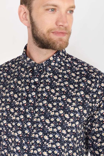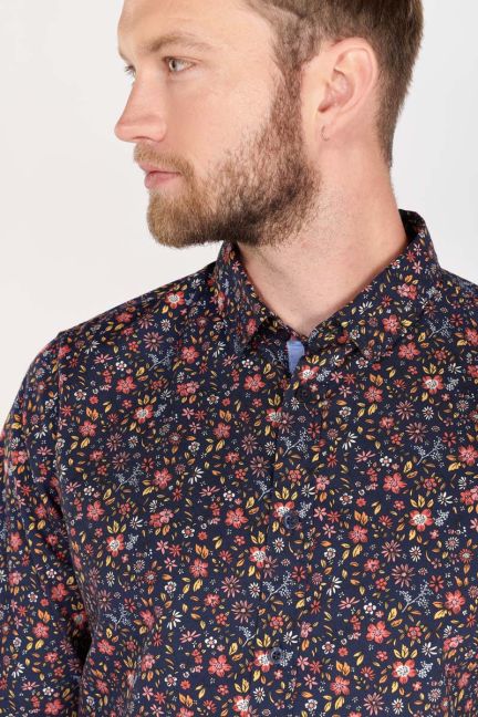 Chemise Juna bleue à motif feuilles