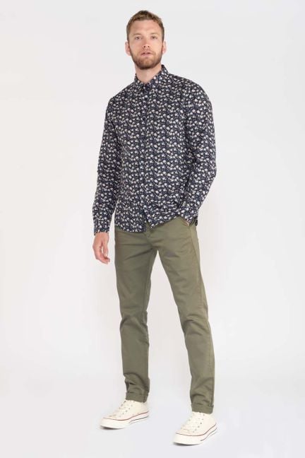 21. Chemise Juna bleue à motif feuilles