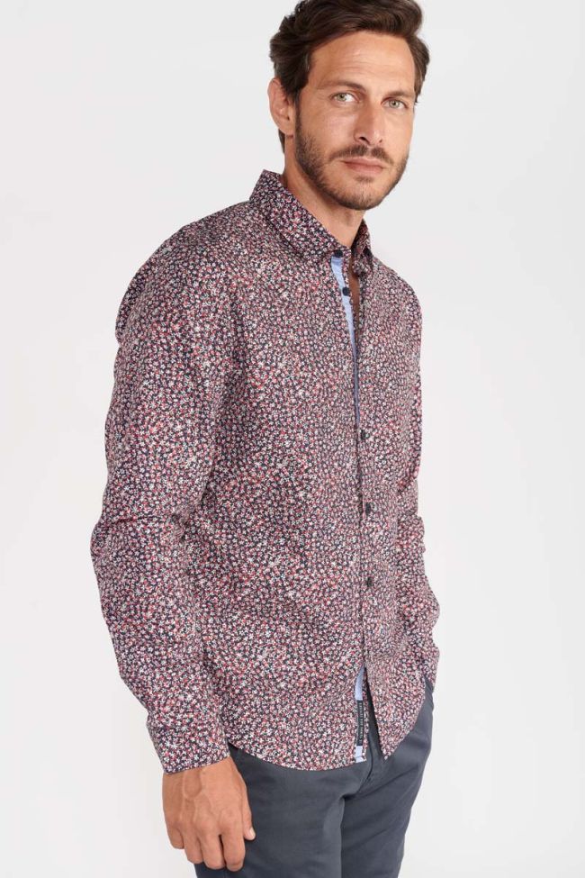 Cette chemise Proze bleu marine à motif fleuri rouge et blanc vous donnera un style casual et élégant avec sa fermeture à boutons ainsi que ses manches boutonnées avec, aux revers des poignets, un liseré personnalisé "Le Temps des Cerises" et un empiècement contrastant bleu. Pour le détail final, un mini liseré drapeau bleu, blanc, rouge dans le dos.