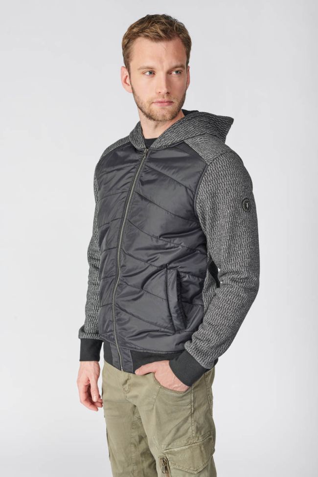 Cette veste sweat bi-matière Solis noire et grise à capuche a un style casual avec son intérieur molletonné, sa fermeture zippée personnalisée LTC et ses deux poches. Sa matière doudoune sur le devant vous aidera à rester au chaud.