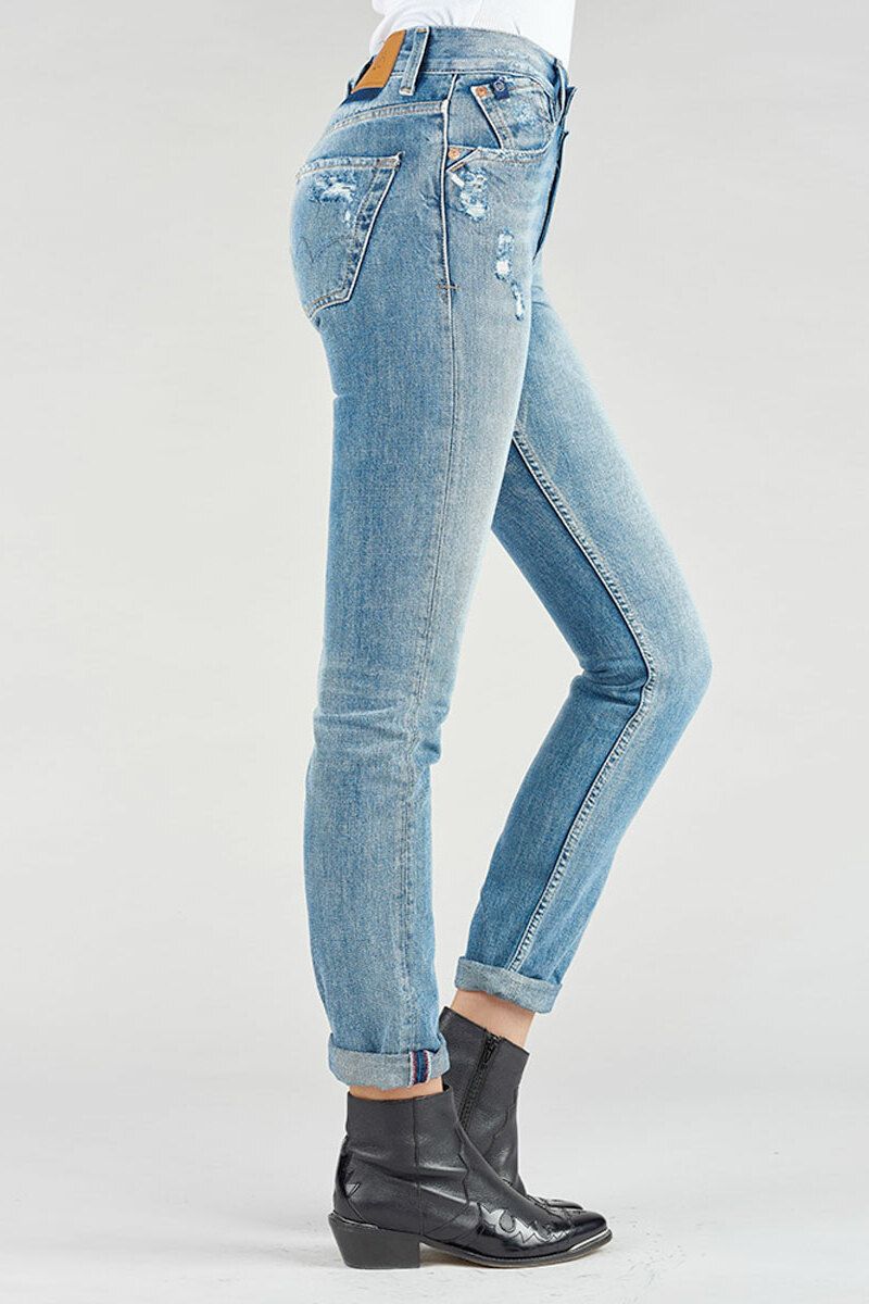 Retour au vintage avec ce jeans tendance qui fait de belles fesses! Tissu 100% coton, taille haute, coupe ajustée et regular sur la jambe.