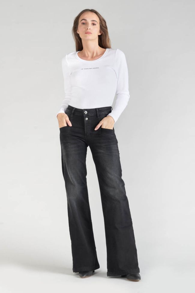 Le Flare, jeans féminin par excellence, s’allie à l’effet pulp. Jeans iconique qui fait de belles-fesses. Le Pulp Flare taille haute et son effet repulpant subliment les fesses et sculptent le fessier grâce aux pinces latérales, aux arrondis sous la ceinture et aux poches idéalement placées. La taille haute est l’allié parfait pour gainer le ventre et allonger la ligne. Ses jambes sont évasées à partir du bas des cuisses pour affiner les jambes, élancer la silhouette et donner une allure flatteuse.