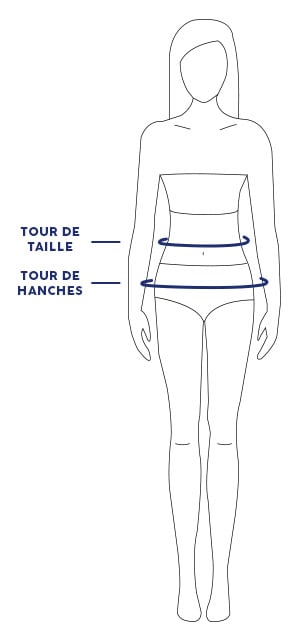 Posez votre mètre ruban à l’endroit le plus large de vos hanches et au plus pointu de votre fessier. Ne serrez pas le mètre.