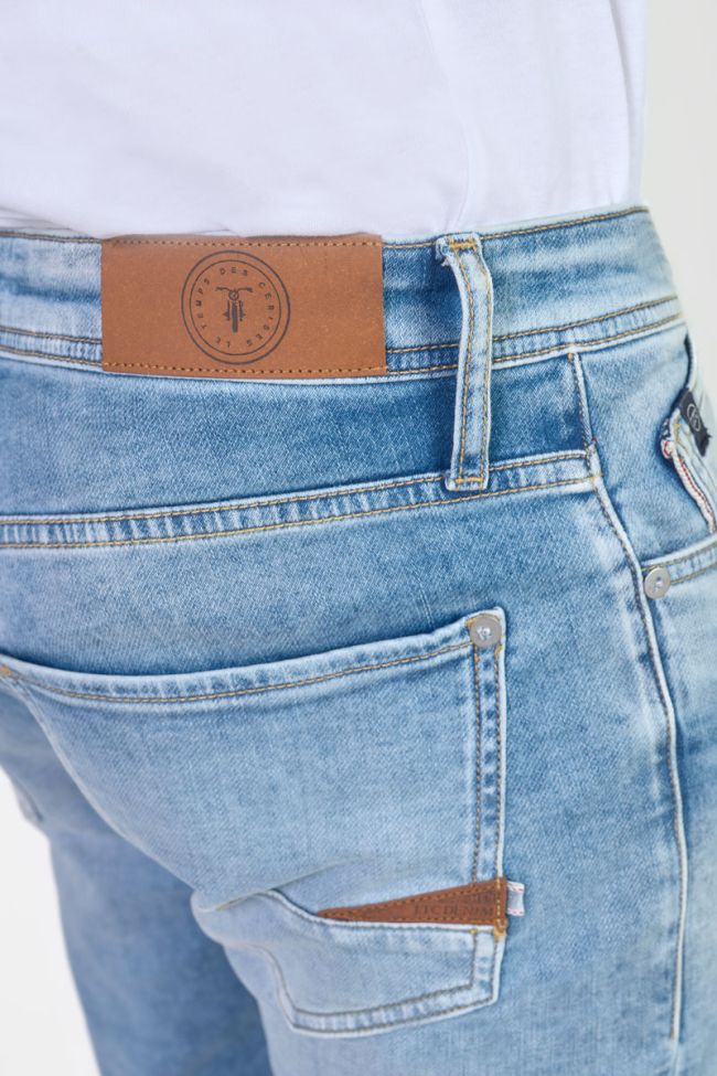 Bermuda à la toile stretch pour un confort optimal et au délavage bleu.