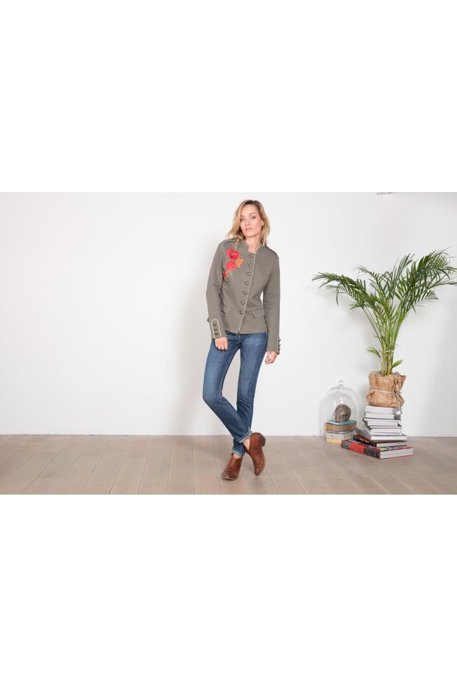 Veste blazer d'inspiration militaire avec col officier et broderies fleurs rouges